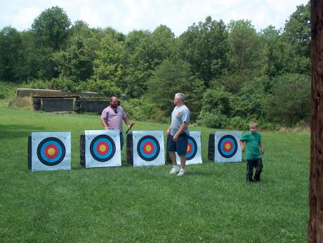 Pulling arrows from the youth targets |